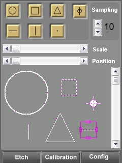 Problem: A manufacturer of optical and laser systems asked us to develop a new generation laser etching system. It needed to be based on a hand-held device with an easy to use pen-based application. The application had to control laser power levels, selection and editing of marker shapes and editing of galvanometer parameters. To meet these requirements we developed both a Windows Mobile 5.0 application running on a HP iPaq and an embedded system module. The multi-threaded Windows application features a series of easy to use custom tabbed dialogs for laser control, marker editing and system configuration. The application communicates via a BlueTooth link to a custom embedded system utilizing a Silicon Lab's microprocessor for lower-level laser and galvanometer control. Video can also be sent back from a camera mounted on the microscope for visual feedback. ![]() ![]() Custom embedded system utilizing a 100 MHz C8051F120 with A/D, D/A, opto I/O, RS-232 and BlueTooth module providing communications, stepper motor control, and laser firing control. |