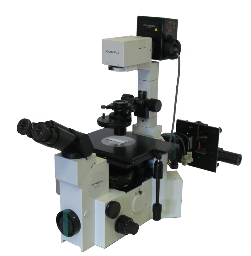 ![]() DynaPoint optic assembly mounted on an Olympus inverted microscope. |