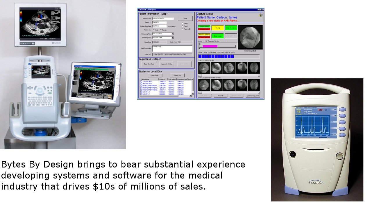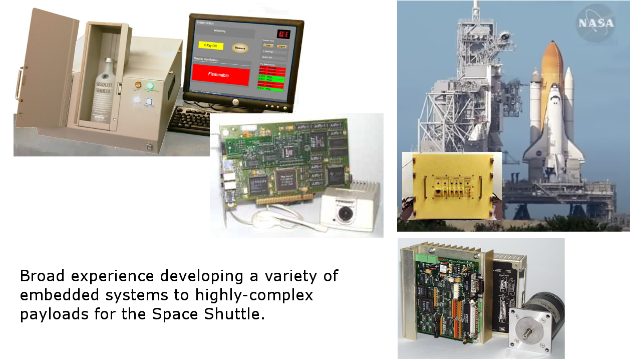 Our expertise: Embedded systems are designed to solve a wide variety of problems in many industries. Real-world applications control motion, electro-optical assemblies, measure fluid flows, analyze spectra, communicate with multiple processors, all under real-time constraints. Some of the most complex applications such as mobile robots require the solution of complex dynamics, optimized control of multiple motors, state estimation, inertial sensing, and machine vision leveraging neural networks for autonomous navigation. Software development for these systems can be extremely challenging with complex software-hardware interdependencies, increasingly complex architectures with real-time distributed processors with critical sychronization and communication needs, and the need for high-relibility, safe user interaction and operation. As you can see in the case studies, Bytes By Design has tremendous experience helping companies design systems that fulfill their technical requirements, ensure their competitive edge, and maximize profits. We help you negotiate the challenges and technical risks, and avoid the pitfalls of developing such systems. |